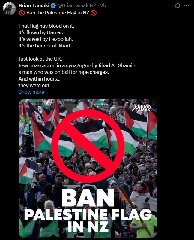 Brian Tamaki’s recent call to ban the Palestine flag in New Zealand misses the mark. I don’t agree with it. Freedom of expression is one of the things that separates a free society from a police state, and we can’t just start picking and choosing which flags or symbols are allowed on our streets because a few people misuse them. There’s a big difference between a flag representing a people and one that explicitly supports a terrorist organisation. Conflating the two does more harm than good.