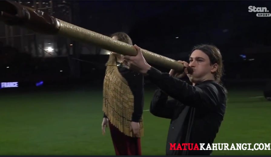I tried to find a clip of the cultural performance from last night’s test, but came across a similar one from the All Blacks vs France match at Forsyth Barr Stadium a few weeks ago. It opened with a white bloke blowing into a taonga pūoro, basically the Māori equivalent of a didgeridoo. It looked more like something out of an Aussie broadcast than a New Zealand rugby match. Then the camera panned to a pale woman screeching and shaking her hands like she had Parkinson’s disease. That was followed by another performer, who didn’t look very Māori either, flapping her arms around like some kind of Flipper Boy (and no, you really don’t want to Google that).