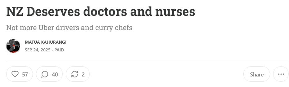 It’s not just about deportation. We need to stop pretending that every new arrival is automatically an “asset” to New Zealand. I said it last week and I’ll say it again: we need more doctors and nurses, not more Uber drivers and chefs. That statement may have upset some people, but it wasn’t said to insult anyone - it was said because it’s true. Our immigration priorities are completely out of balance. Our infrastructure cannot handle more Uber drivers and their six children.