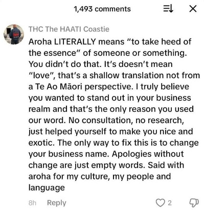 Just using a Māori word we are constantly told everyone should learn, celebrate, and normalise. Across Facebook, TikTok, and Instagram, the outrage machine fired up immediately. Accusations of “appropriation”, demands for apologies, calls for boycotts. Enough noise that the company’s CEO, Katie Bourke, felt forced to publicly explain herself just to calm the mob.