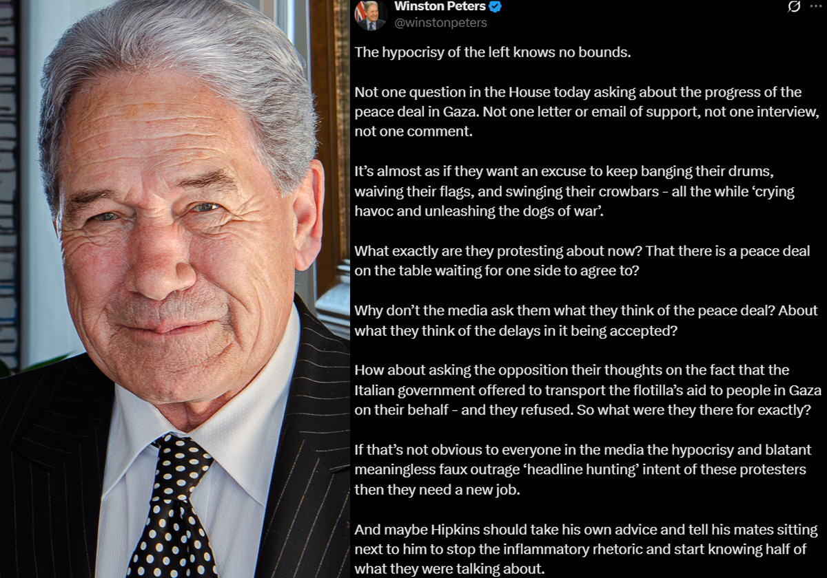 Winston Peters has hit the nail on the head again. His latest post calling out the hypocrisy of the left over Gaza isn’t just political theatre, it’s a reminder of how shallow and performative the outrage machine has become.
